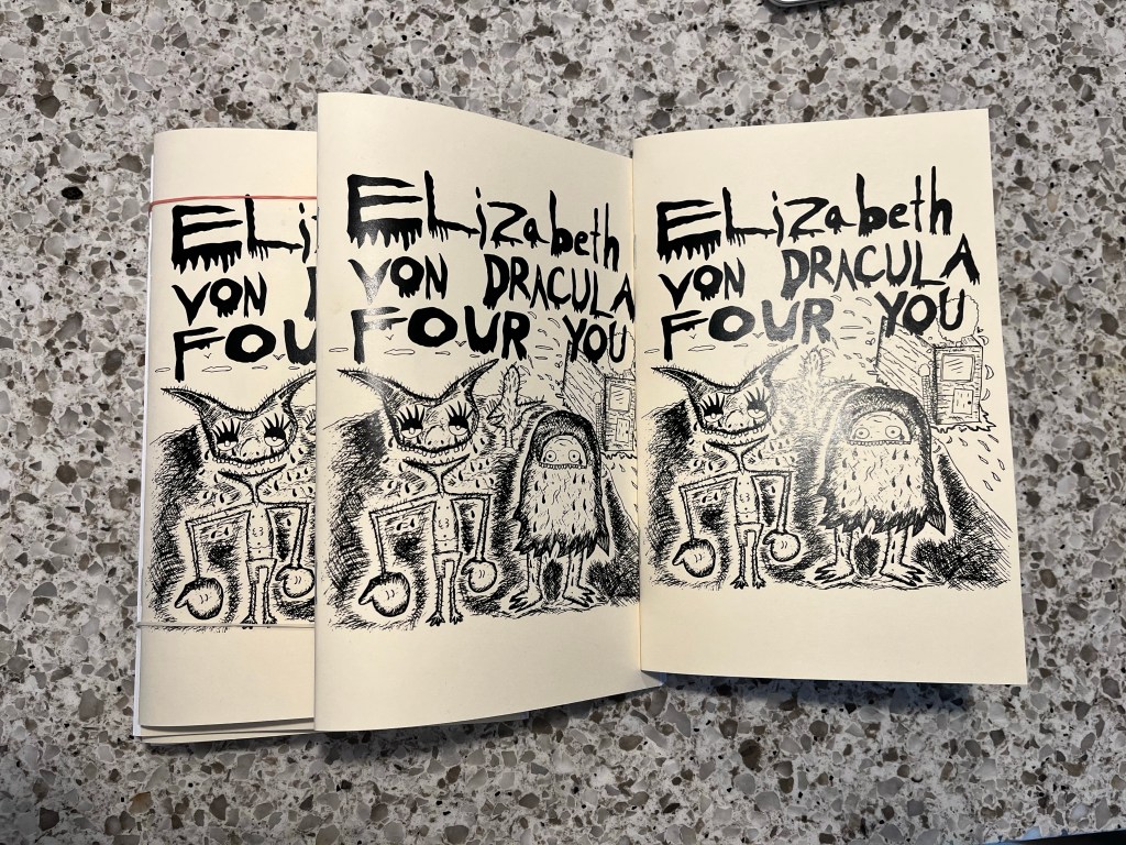 Some of the digital or physical stuff included with the transformation may include: new issues of Elizabeth von Dracula (a comic); Yum Yum Adventure Card Game postcards (a solo ttrpg my son and I are creating); Paper Dungeon materials (a solo ttrpg with some crossover with Yum Yum); Pink Midnight (zines about movies); Juke Juice (printed materials about music); and chapbooks (short stories; 1 per chapbook FIRM).